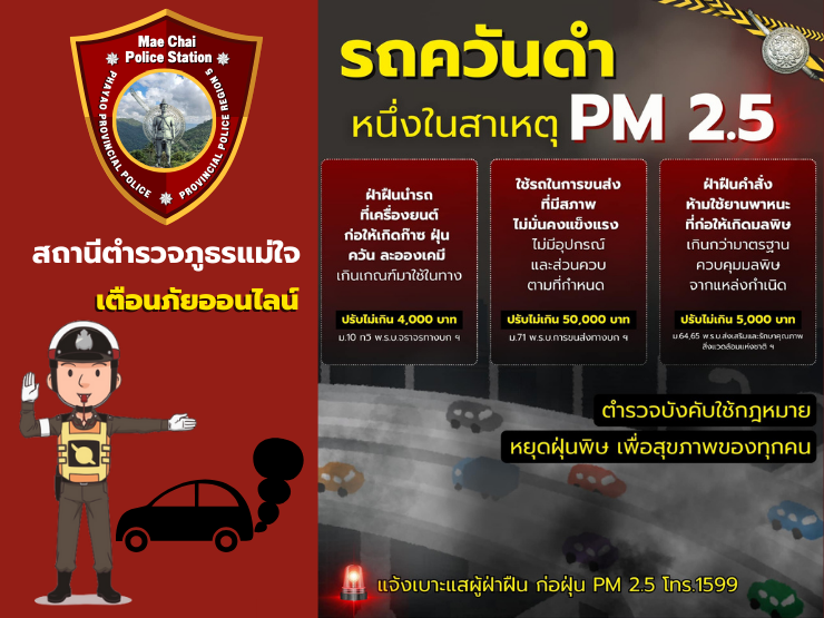 สภ.แม่ใจ ขอประชาสัมพันธ์ หยุดรถควันดำ หยุด ฝุ่นPM2.5รถควันดำ หนึ่งในสาเหตุเพิ่มฝุ่นละอองขนาดเล็ก P