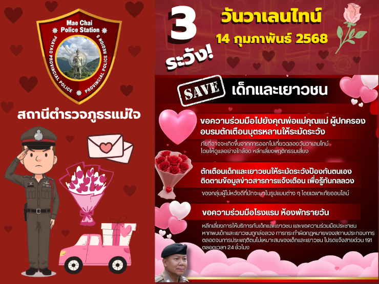 สภ.แม่ใจ ขอประชาสัมพันธ์ ❤️3 ระวัง วันวาเลนไทน์ ❤️ 14 กุมภาพันธ์ 2568 SAVE เด็กและเย