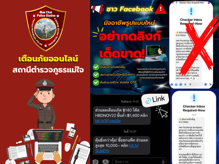 วันที่ 3 มีนาคาม 2568สภ.แม่ใจ ขอ ประชาสัมพันธ์ ห้ามกดลิงก์!ระวัง! มิจฉาชีพแอบอ้างเป็น Facebook หรือ
