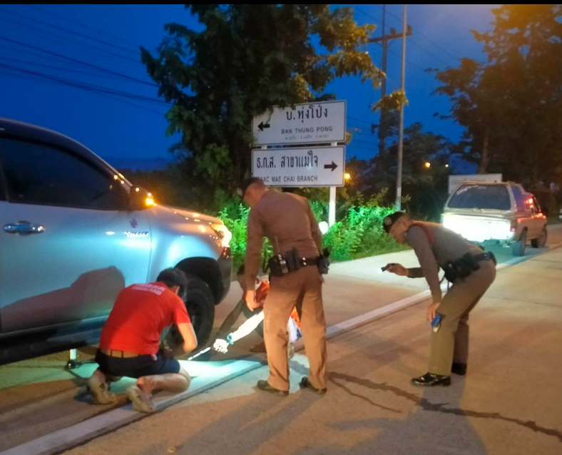ชุด 20, 201 ให้ความช่วยเหลือรถยนต์ยางรั่วแยกแม่สุกขาขึ้น ประสานช่างรอประแจชนิดพิเศษเพื่อซ่อมแซม จนสามารถเดินทางไปต่อไปได้