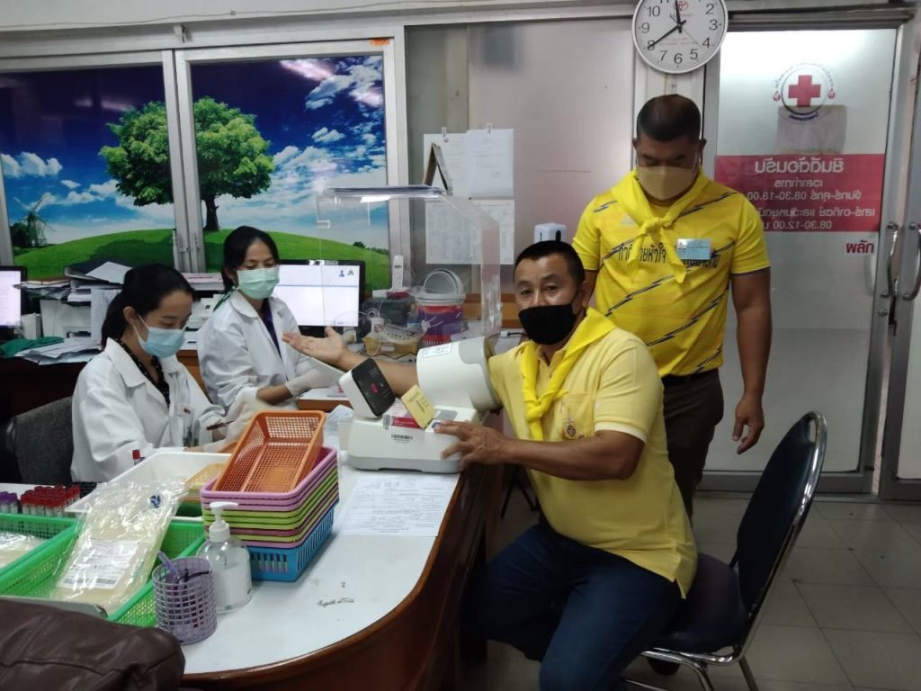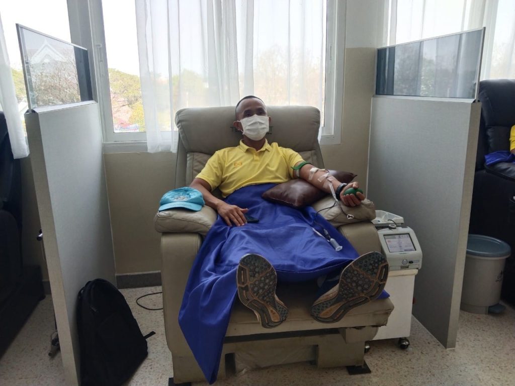 พ.ต.ท.นิธิกร เดชบุญ รอง ผกก.ป.สภ.แม่ใจพร้อมกับข้าราชการตำรวจในสังกัด ร่วมกันบริจาคโลหิต ณ รพ.พะเยา