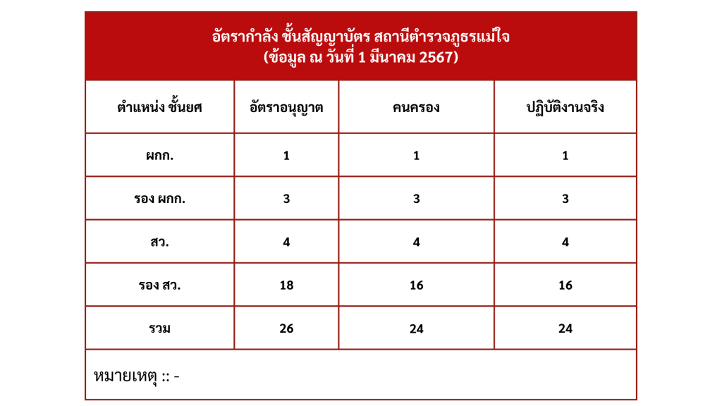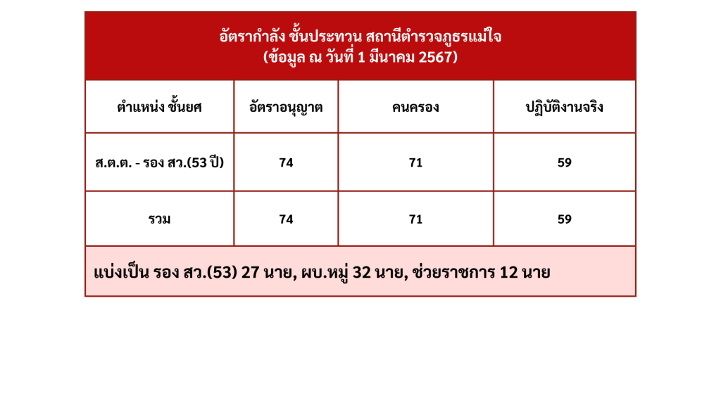 O1.2 อัตรากำลังของสถานีตำรวจแม่ใจ