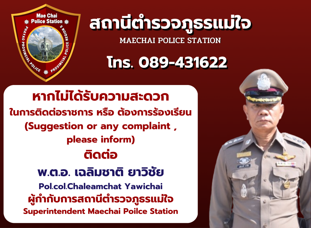 หากไม่ได้รับความสะดวกในการติดต่อราชการหรือ ไม่ได้รับความเป็นธรรม โปรดติดต่อ 📌 พ.ต.อ. นิธิกร เดชบุญ👮🏻