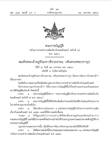● พระราชบัญญัติ ลิขสิทธิ์ พ.ศ. 2537 และที่แก้ไขเพิ่มเติม