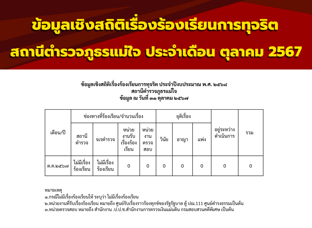 ของสภ.แม่ใจ ไม่มีเรื่องร้องเรียน
