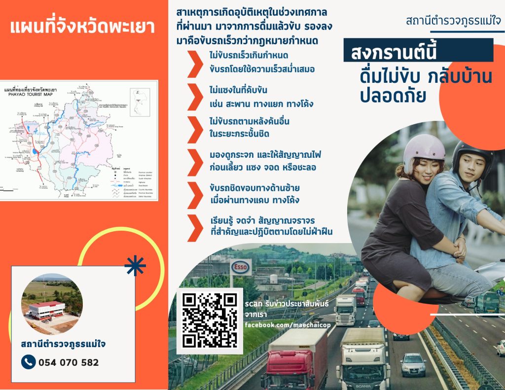 เทศกาลสงกรานต์ใกล้เข้ามาแล้ว สภ.แม่ใจ ขอแสดงความห่วงใยในเรื่องการขับขี่ปลอดภัยในช่วงเทศกาลนี้ โปรดระมัดระวังและปฏิบัติตามกฎหมายและข้อบังคับการขับขี่อย่างเคร่งครัดเพื่อเพิ่มความปลอดภัยในทางของท่านและผู้อื่นในช่วงเทศกาลฯ สภ.แม่ใจ ขอแนะนำให้ท่านไม่ดื่มเครื่องดื่มที่มีส่วมผสมของแอลกอล์ฮอร์ในระหว่างขับรถหรือขับรถในขณะมึนเมา เพราะเป็นอันตรายไม่เพียงแต่ต่อชีวิตของท่านแต่ยังอาจเป็นอันตรายต่อผู้อื่นด้วย