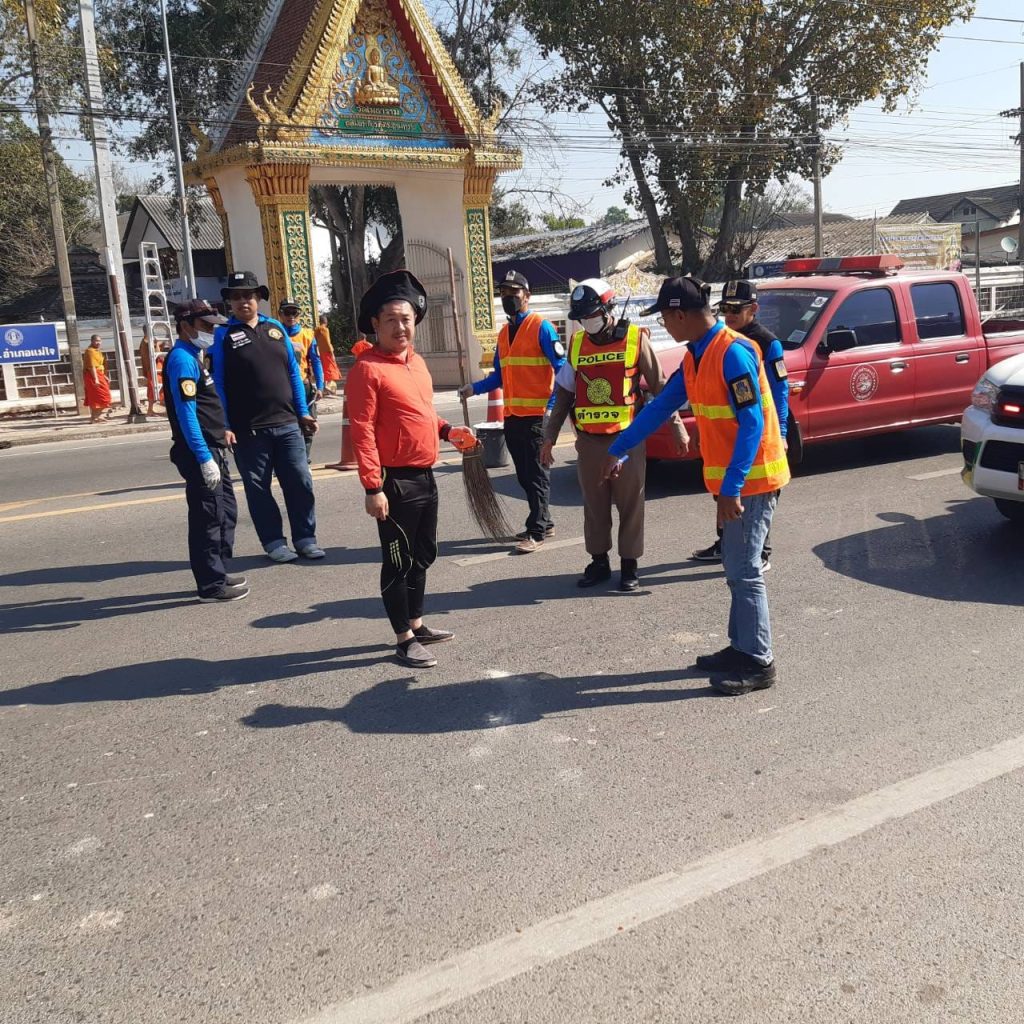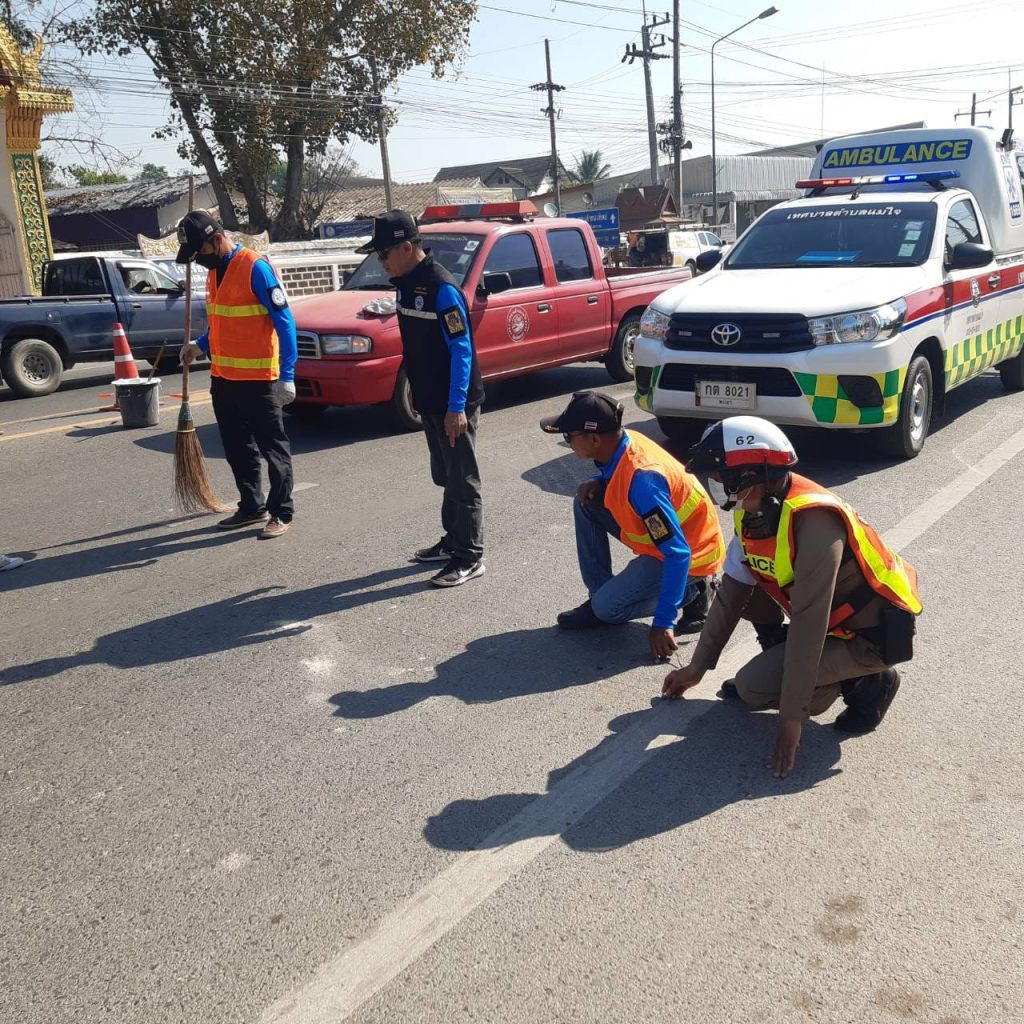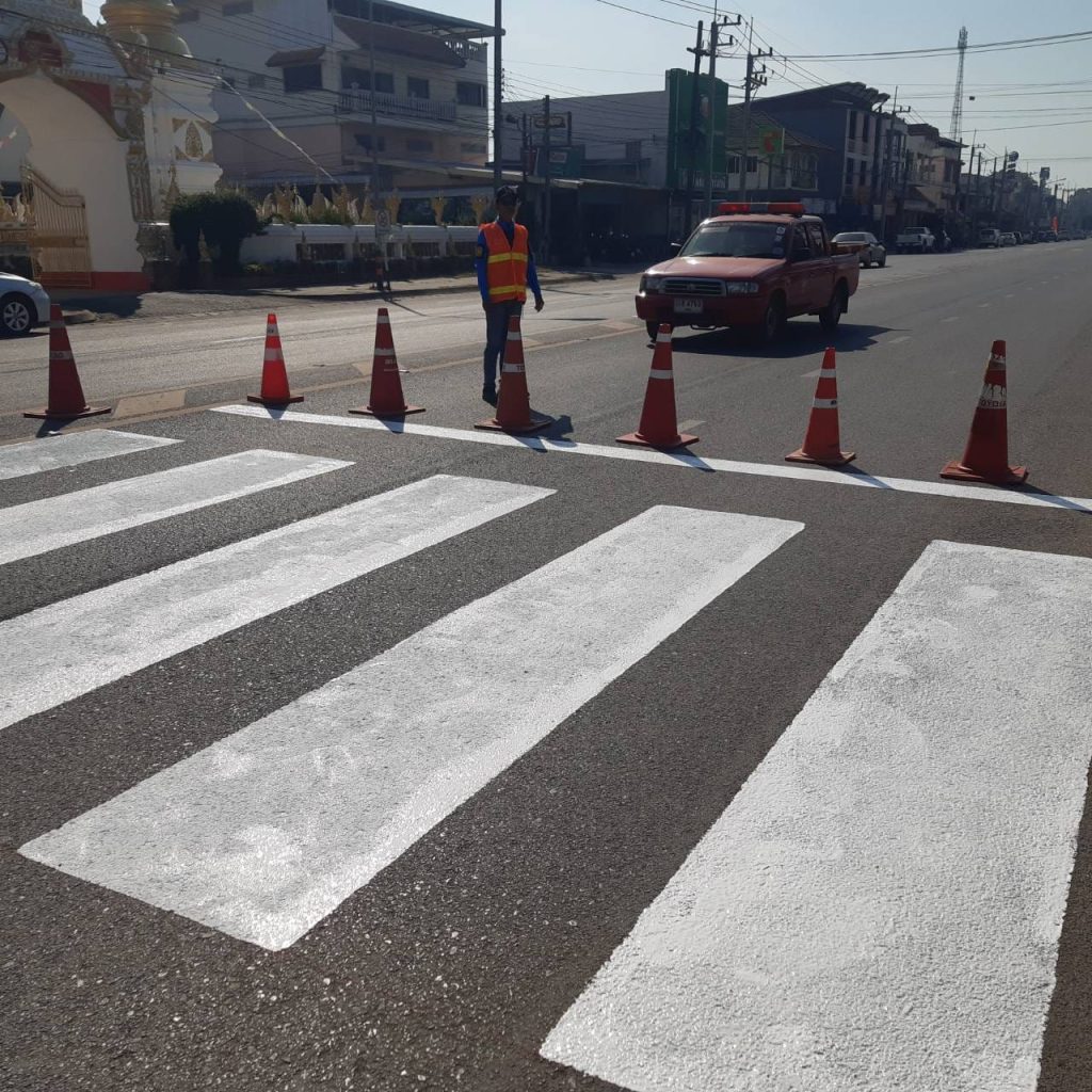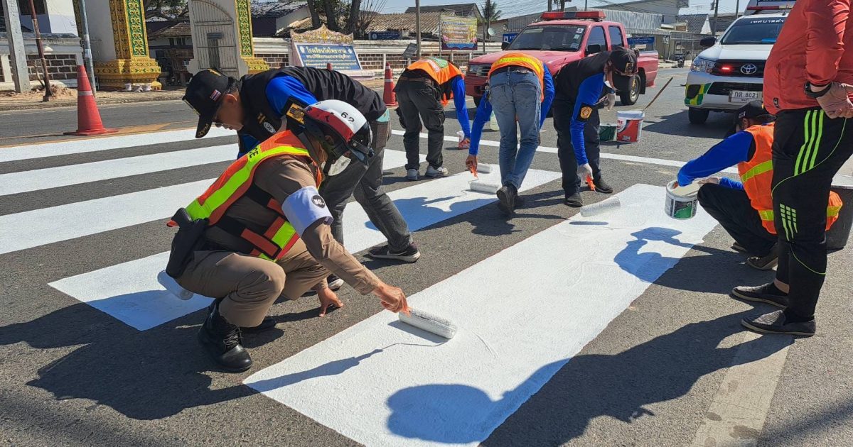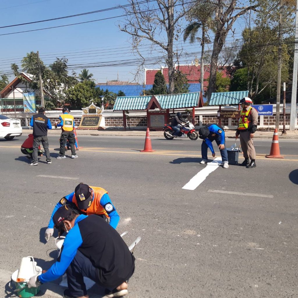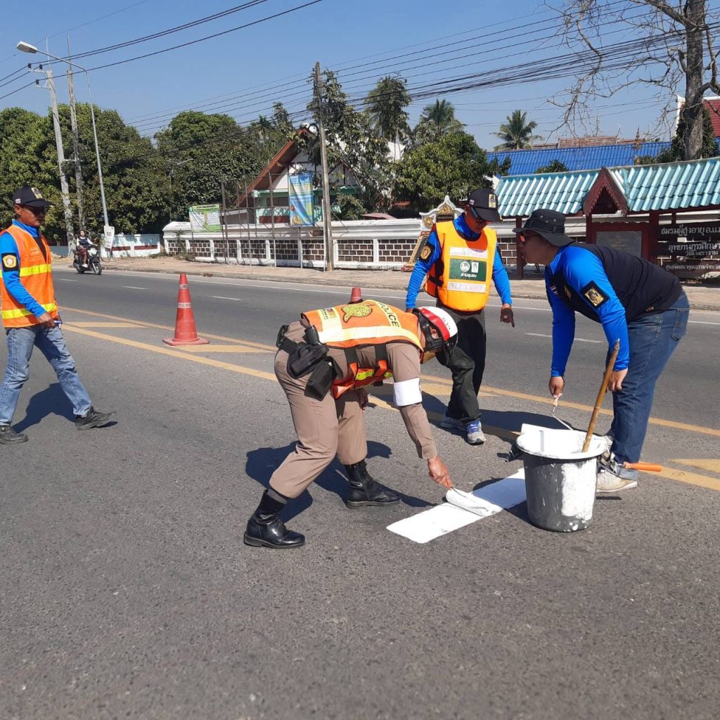 เจ้าหน้าที่ตำรวจสภ.แม่ใจ ร่วมกันทาสีตีเส้นทางม้าลาย ในจุดเสี่ยงที่จะเกิดอุบัติเหตุ ในตัวเมือง อ.แม่ใจ