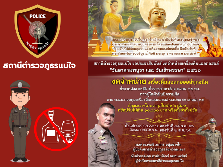 สภ.แม่ใจ ประชาสัมพันธ์ “กำหนดห้ามจำหน่ายเครื่องดื่มแอลกอฮอลล์”