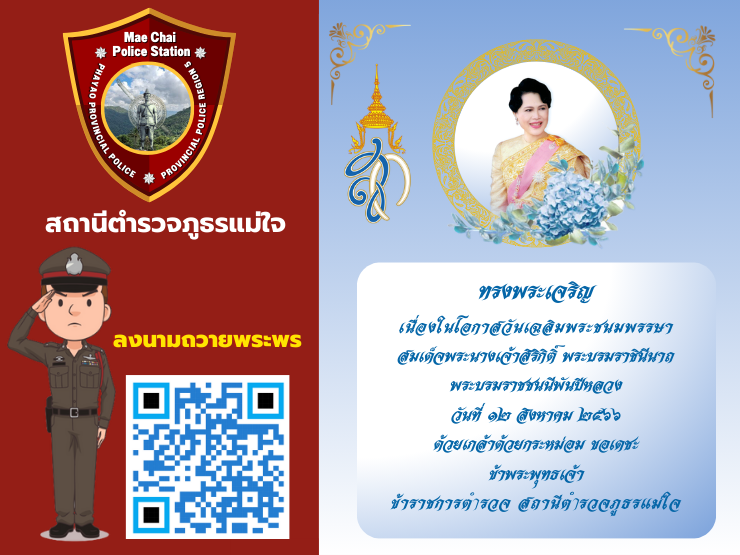 สภ.แม่ใจ ขอเชิญร่วมลงนามถวายพระพรชัยมงค สมเด็จพระนางเจ้าสิริกิติ์ พระบรมราชินีนาถ พระบรมราชชนนีพันปีหลวง เนื่องในโอกาสวันเฉลิมพระชนมพรรษา และวันแม่แห่งชาติ 12 สิงหาคม 2563
