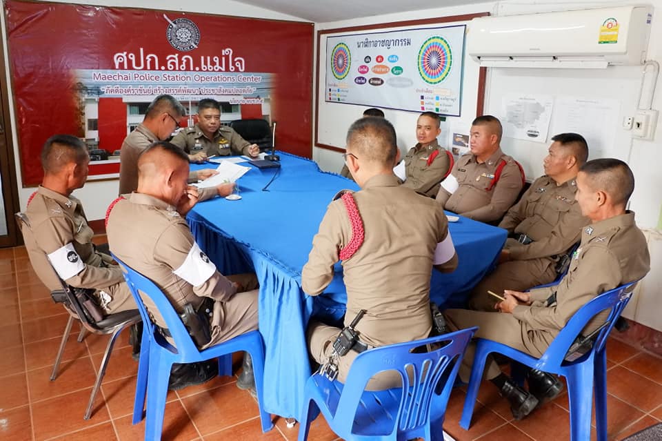 พ.ต.อ. เฉลิมชาติ ยาวิชัย ผกก.สภ.แม่ใจ มีประชุมชี้แจ้ง จนท.งานธุรการ