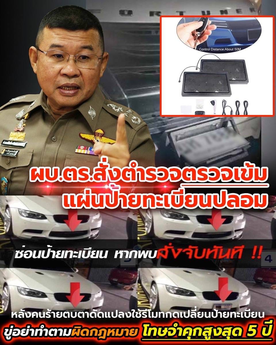 ผบ.ตร.สั่งตำรวจตรวจเข้ม แผ่นป้ายทะเบียนปลอม หลังคนร้ายตบตาดัดแปลงใช้รีโมทกดเปลี่ยนป้ายทะเบียน ขู่อย่าทำตามผิดกฎหมาย โทษจำคุกสูงสุด 5 ปี
