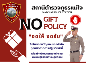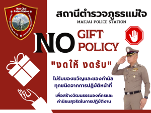 ประกาศ สถานีตำรวจภูธรแม่ใจ เรื่อง เจตนารมณ์ที่จะไม่รับของขวัญฯ No Gift Policy