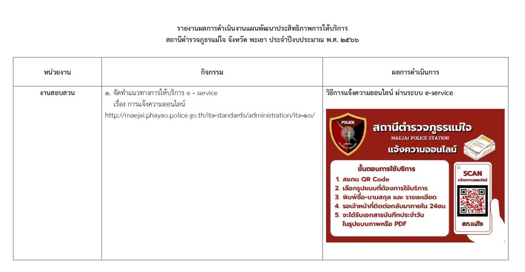 026.2 รายงานผลการดําเนินการตาม แผนพัฒนาประสิทธิภาพการให้บริการ