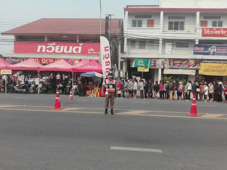อำนวยการจราจร ดูแลความปลอดภัยให้กับราษฏรที่ไปร่วมงานขอบคุณลูกค้า บริเวณหน้า ร้านทวียนต์ อ.แม่ใจ